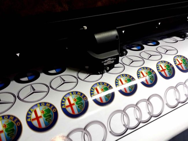 Wir drucken und schneiden die Aufkleber in einem